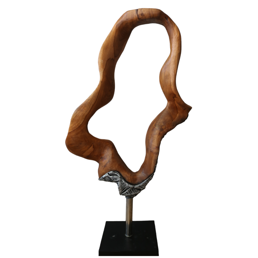 Special design with a unique combination of teak wood and aluminium. This is custom design. It has natural shape. It can be used to beautify the living room or fill the corner of the room. It’s available with some finishing color.